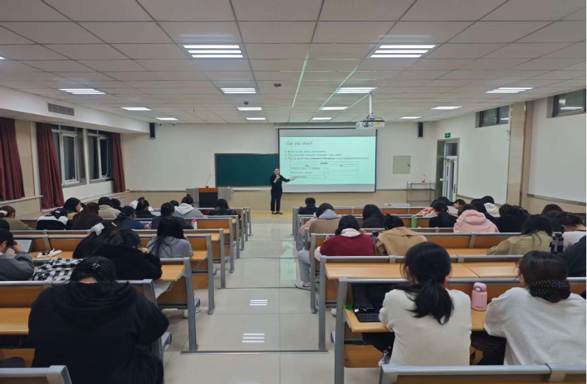 10月30日晚上,外国语学院“师范生从业技能培养工作坊”第四十二期在8B102报告厅举行。曲阜市东方学校副校长孔令艳为2023级英语师范专业大约120名同学作了题为《基于〈标准〉的教学建议及案例分析》的专题讲座。刘春雷老师出席并主持了本次活动。