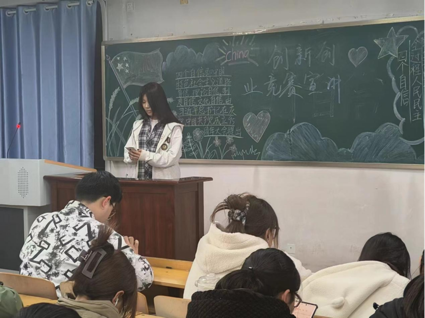 济宁学院外国语学院新时代青年理论讲习团于10月23日,组织开展了以“创新创业竞赛宣讲”为主题的新时代青年理论讲习团主题宣讲活动。活动以班级为单位,分别在3A311、3A211、3A318举行。此次活动取得了圆满成功。
