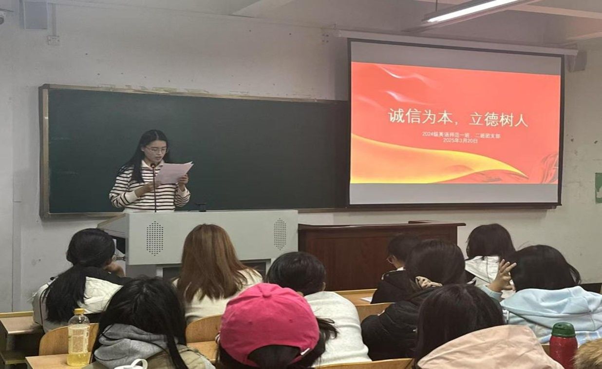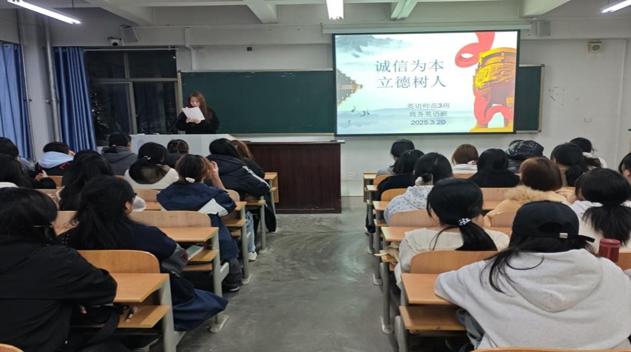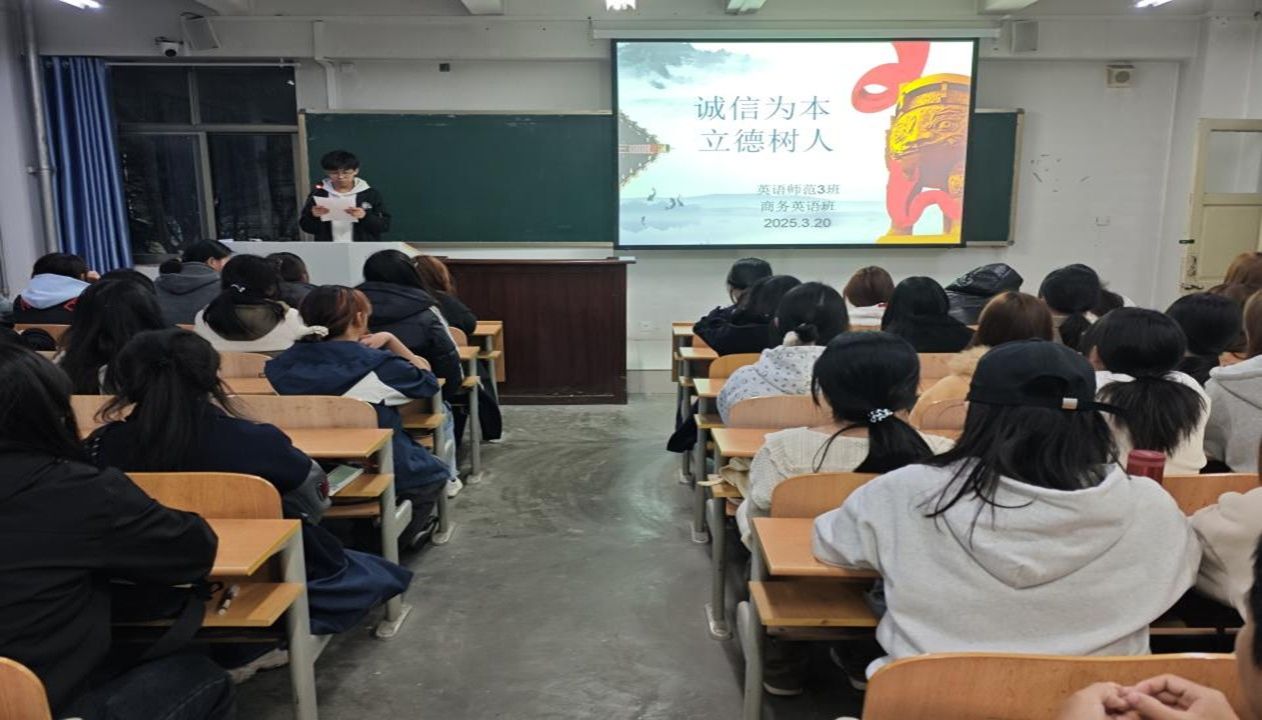 济宁学院外国语学院新时代青年理论讲习团于3月20日,组织开展了“诚信为本,立德树人”主题宣讲活动。活动以班级为单位,在3A211、3A217教室举行。