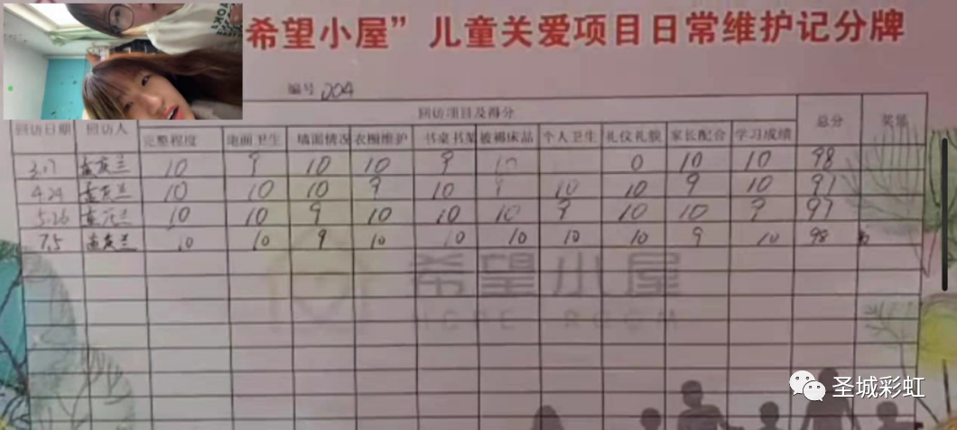 这次回访是我和小组成员共同完成的。我们怀着激动的心情给孩子妈妈打了视频电话,同时也跟瑶瑶小朋友聊了会儿天。通过此次视频我们了解了她的学习情况和居家疫情防控情况。了解到了希望小屋的建设给孩子们创造了一个更好的学习环境。我感觉到无比自豪,并且从中积累了学习经验。