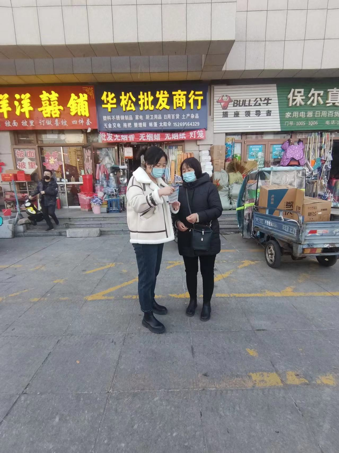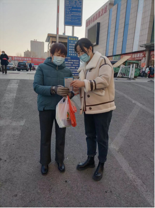 团队党员侯春婧向社区居民讲述阳康后的注意事项,发放“阳康”注意事项宣传手册,具体包括感染新冠后居家指南,阳康后的注意事项和恢复计划。与此同时,赵超然同学引导社区居民科学佩戴口罩并积极分发口罩,营造全民参与做好重大疫情防控工作的积极氛围。