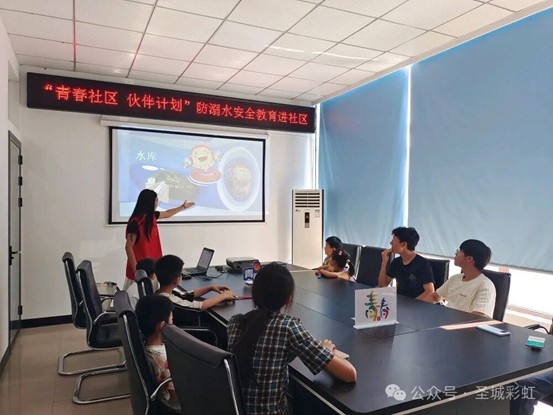 6月23日上午9点,济宁学院外国语学院党员志愿服务队联合时庄街道团工委在新苑社区党群服务中心开展“青春社区 伙伴计划”暖心课堂,开展“延安精神宣讲”和“防溺水安全教育宣讲”活动。