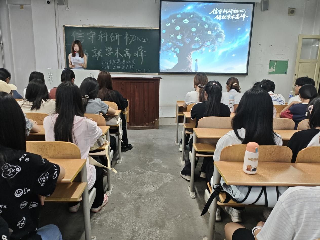 济宁学院外国语学院于5月28日,组织开展了“信守科研初心,铸就学术高峰”主题宣讲活动。活动以班级为单位,分别在3A211和3A217教室举行。