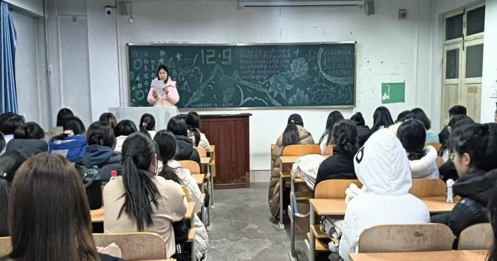 济宁学院外国语学院新时代青年理论讲习团于11月6日,组织开展了以“纪念‘12·9爱国运动’89周年”为主题的宣讲活动,活动以班级为单位,在3A211、3A217教室举行。