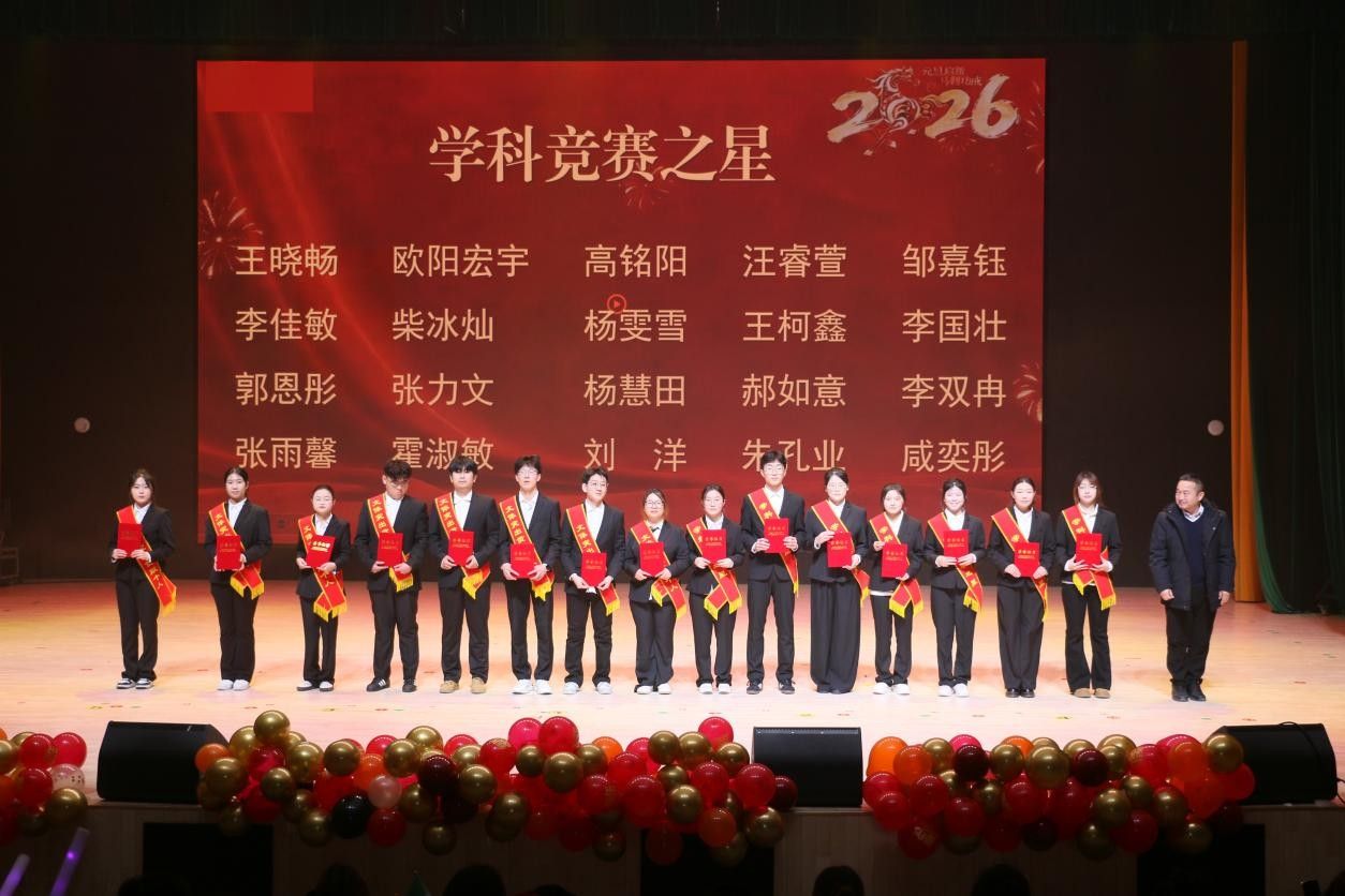 晚会中,为外国语学院2025年度在学科竞赛、文体活动、志愿服务、文明宿舍建设等方面表现突出的先进个人与集体表彰颁奖。榜样的力量与中外联欢的氛围相融,进一步激发了学子们跨文化交流的热情与担当作为的决心。
