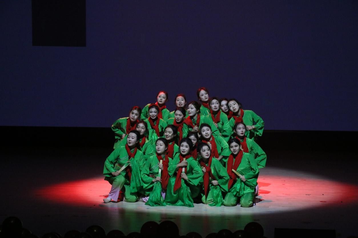 随后,外国语学院辅导员与2026届毕业生代表合唱的《当离别开出花》,道尽师生情谊与青春不舍;音乐学院学子再度登台,以舞蹈《映山红》致敬经典,红色文化的感染力直抵人心。晚会在全体人员齐唱《我和我的祖国》的激昂旋律中推向高潮,真挚的爱国情怀在歌声中升腾,也让中外学子对中国的家国情怀有了更深刻的理解。