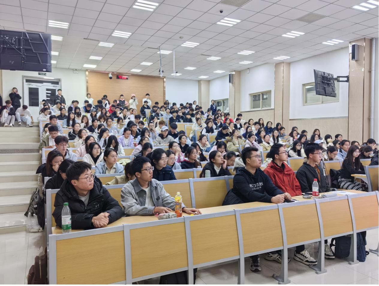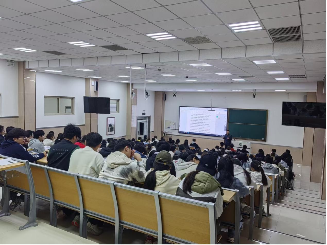 11月11日晚,由外国语学院策划、教务处统筹的 “大学英语四级助学”系列讲座第二场 —— 听力专题在2#B102教室如期开讲。本场讲座聚焦四级听力这一 “失分重灾区”,精准破解“听不清、记不住、选不对”的备考难题,为全校近200名备考学生送上系统化的听力提分攻略,助力大家筑牢应试信心。