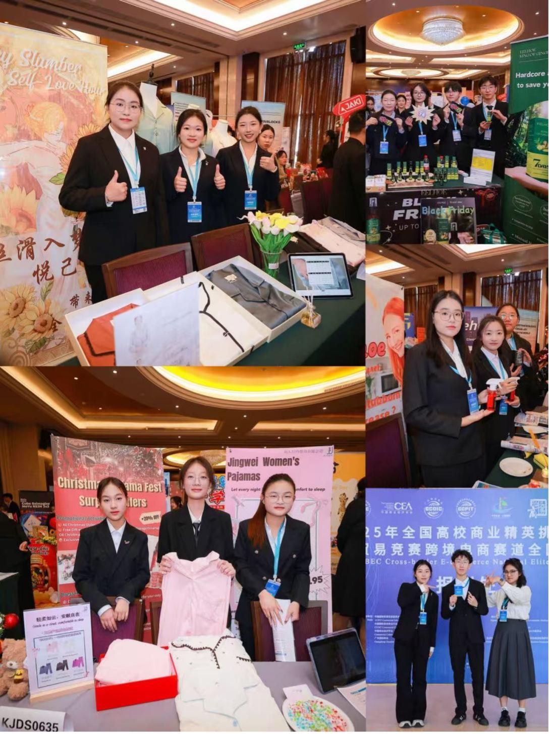 精英赛现场,学子以饱满的精神状态完成了8分钟选品发布会和现场答辩环节,在选品优势分析、跨境运营数据解读、多语言营销展示等方面表现突出,展现了扎实的专业功底和良好的综合素养。而在同期举办的展洽环节中,各队设置特色展位,将参赛方案中的核心产品与运营思路转化为可视化展陈内容,通过海报展示、样品陈列、多语言现场推介等形式,精准对接评委的评分维度,细致呈现方案亮点。面对巡展评委围绕“产品竞争力、数据支撑、推广落地性”的核心提问,学子们分工协作、从容应答。